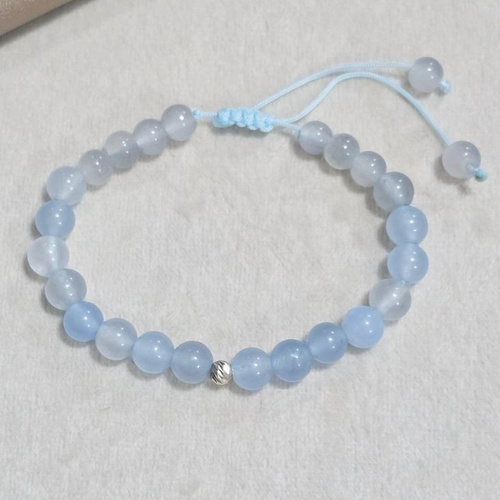 دستبند تمام سنگ عقیق آبی اصل و گوی نقره 925